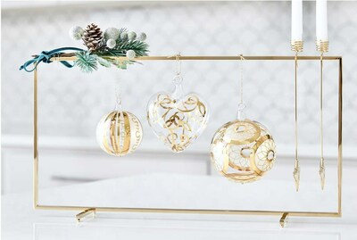 Cadeaux Christmas’ 24K gold ornaments are made in Europe using a patented process that still follows traditional glass blowing methods.